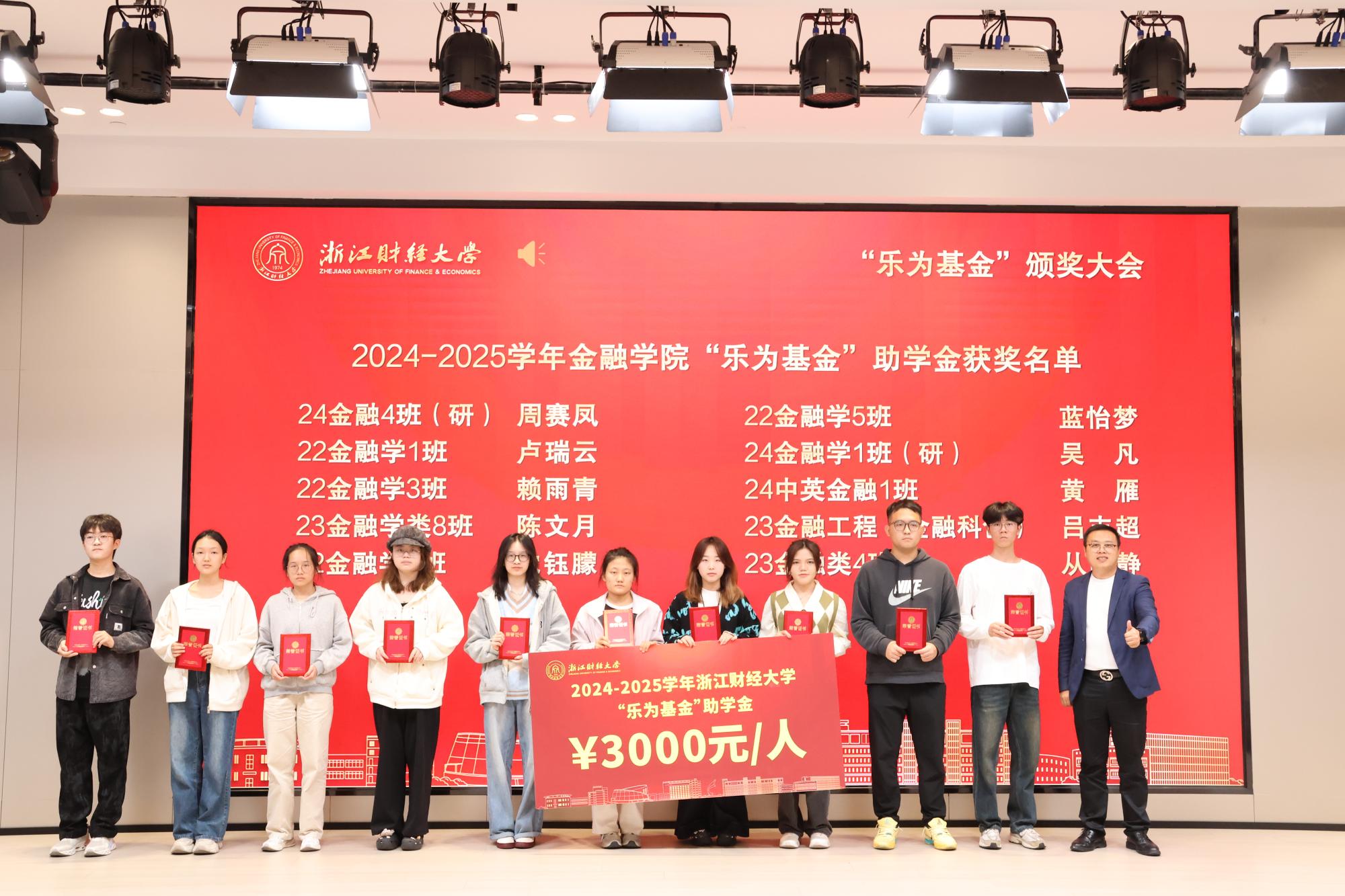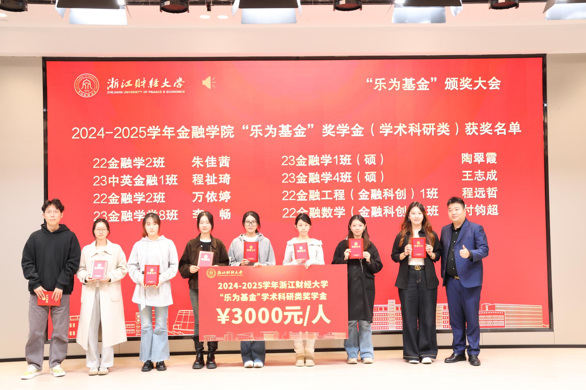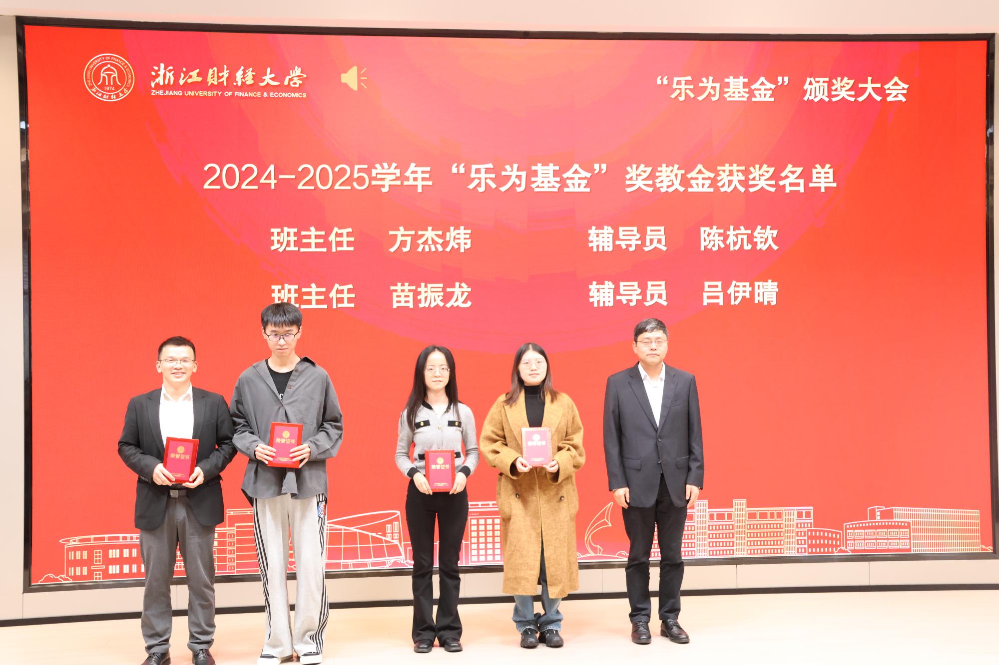 校党委研究生工作部部长陈远高宣读了2024—2025学年“乐为基金”获奖师生名单。本届“乐为基金”奖项覆盖学习成绩、学科竞赛、志愿服务、学术科研、文体活动、学习进步及助学金等多个类别,充分体现了基金支持全人教育、助力多元成才的设立初衷。随后,在庄重而热烈的气氛中,大会迎来颁奖环节。何贤杰与“乐为基金”捐赠方代表周乐为、楼仲平、胡江伟、陆耀钟、姚巨辉、王家东、蒋科峰、刘垦、叶婷婷、梅嘉等嘉宾,分别为经济学院、酷爱成人网
