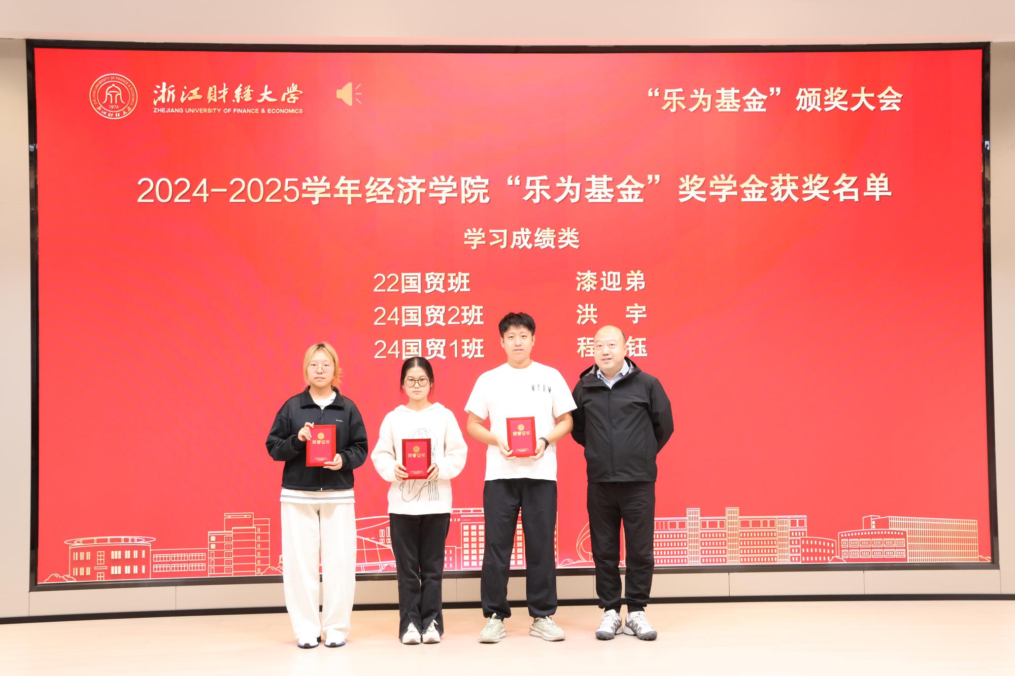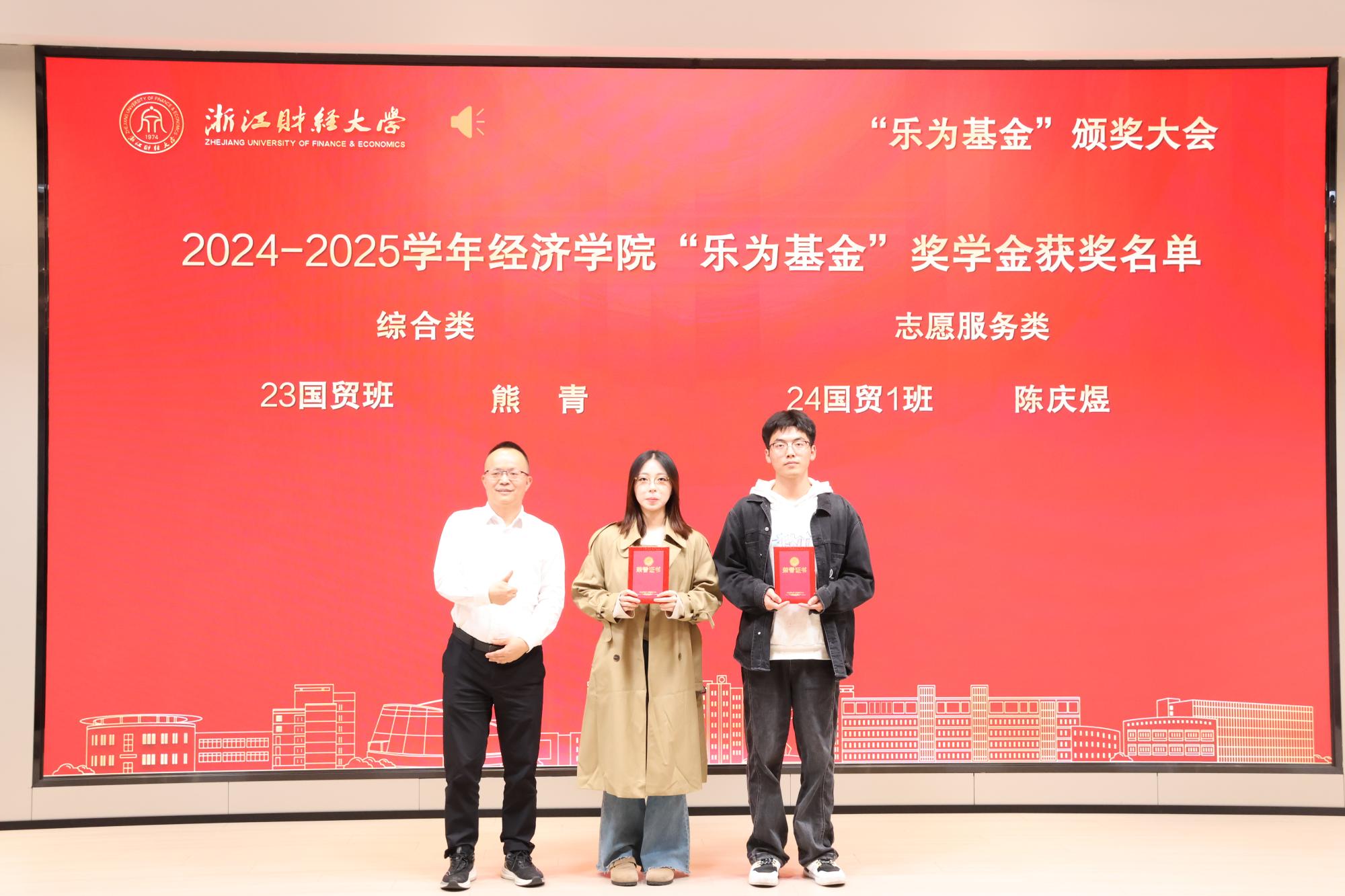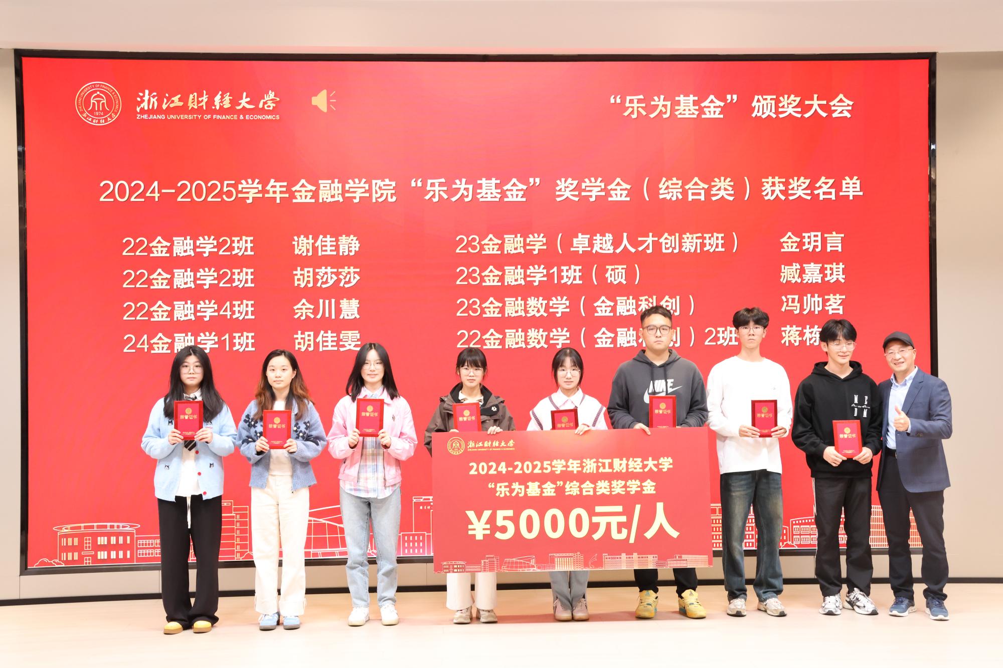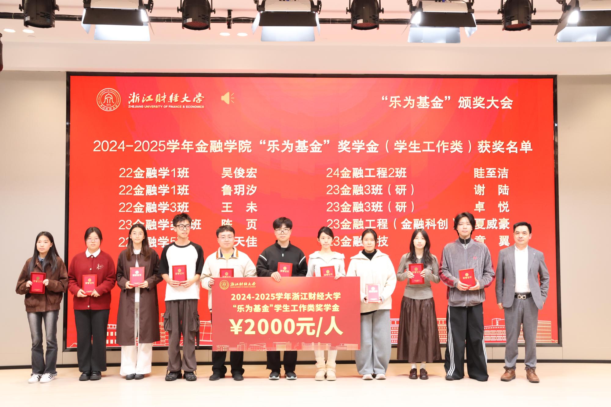 校党委研究生工作部部长陈远高宣读了2024—2025学年“乐为基金”获奖师生名单。本届“乐为基金”奖项覆盖学习成绩、学科竞赛、志愿服务、学术科研、文体活动、学习进步及助学金等多个类别,充分体现了基金支持全人教育、助力多元成才的设立初衷。随后,在庄重而热烈的气氛中,大会迎来颁奖环节。何贤杰与“乐为基金”捐赠方代表周乐为、楼仲平、胡江伟、陆耀钟、姚巨辉、王家东、蒋科峰、刘垦、叶婷婷、梅嘉等嘉宾,分别为经济学院、酷爱成人网