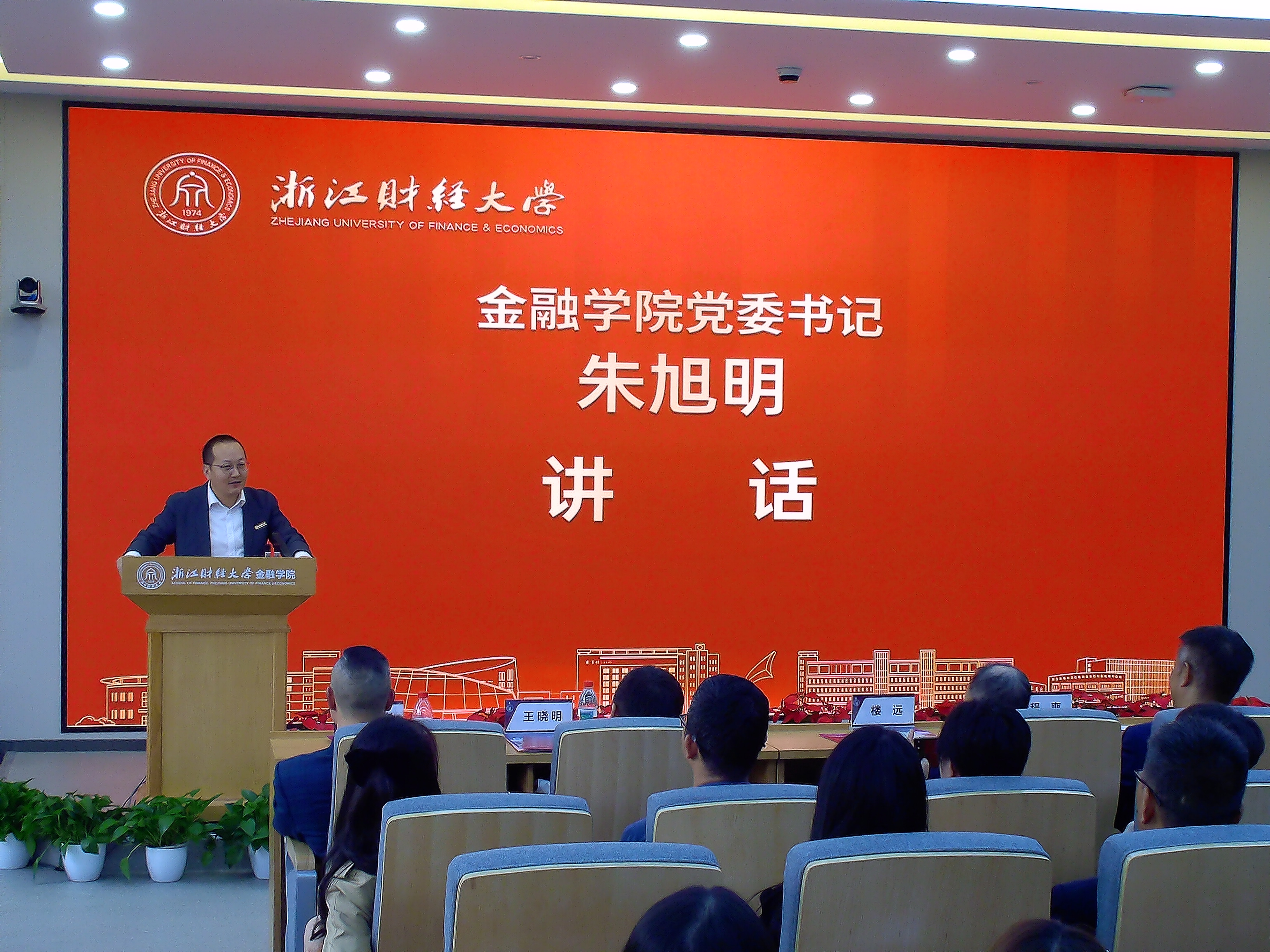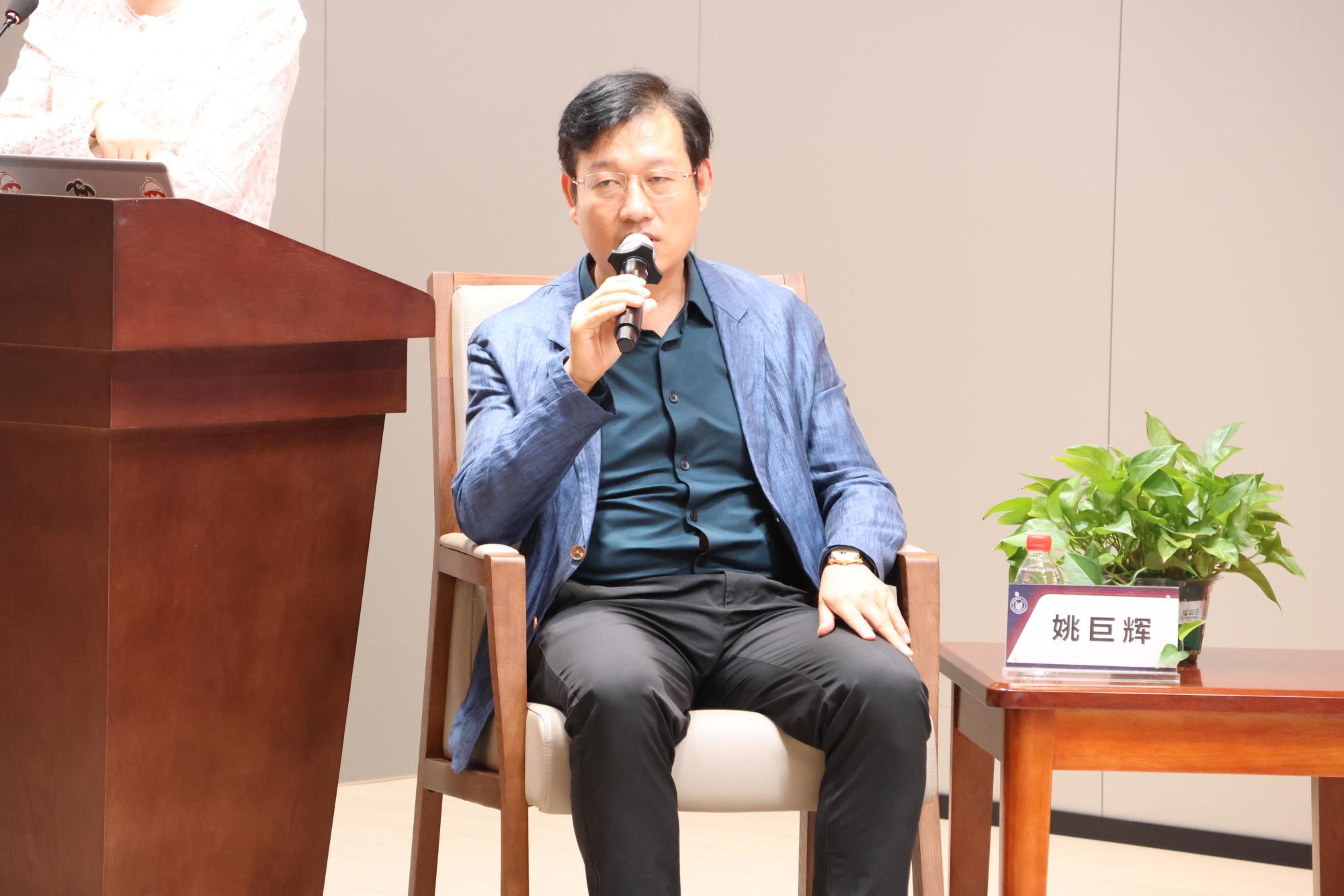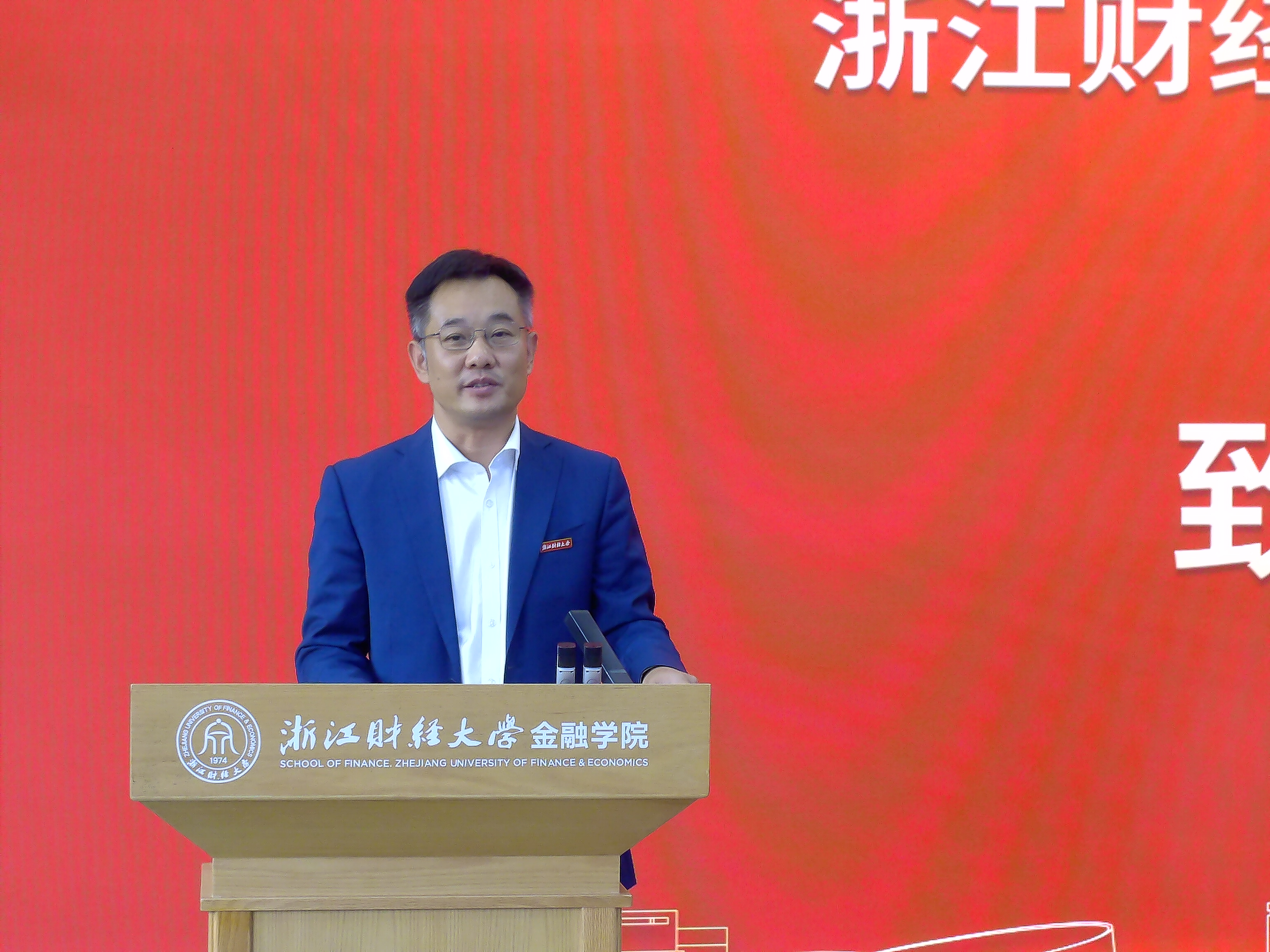 “明栋基金”捐赠方代表王晓明校友讲话。王晓明校友在讲话中回顾了设立基金的初心,他表示未来将继续助力学院培养更多金融领域优秀人才。