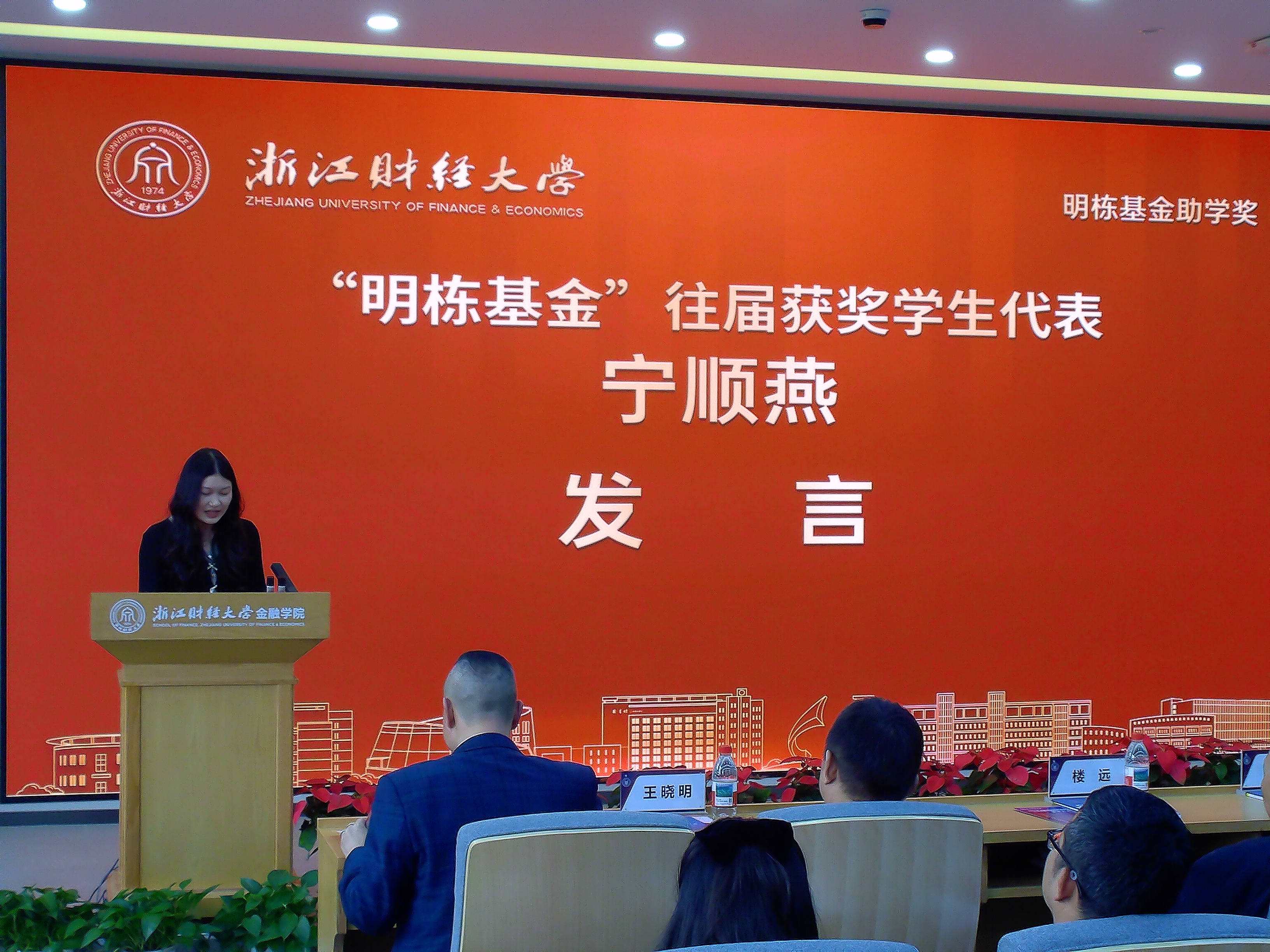 往届获奖校友、2019级金融学2班宁顺燕也回到现场,分享了“明栋基金”对自己求学时的帮助,同时也祝愿“明栋基金”在下一个十年越办越好。