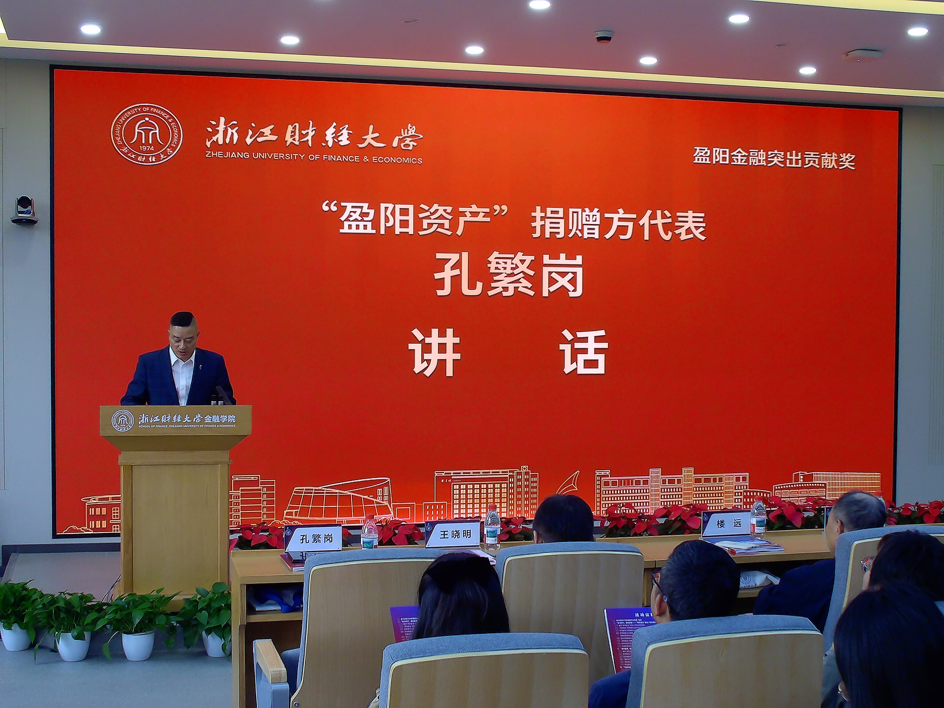 浙江盈阳资产管理股份有限公司代表孔繁岗校友讲话。他指出,“盈阳金融突出贡献奖” 已颁授十周年。在酷爱成人网