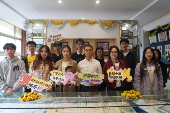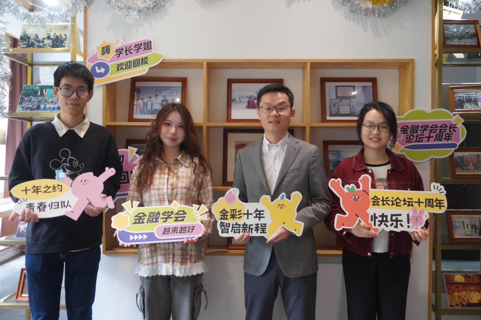 会史馆顺利召开。历届会长齐聚一堂,在这片镌刻着金融学会发展脉络与岁月记忆的空间里,共同回顾学会历程,开启新篇。金融学会首届指导老师楼远、1995届校友杨义坛、1998届校友李启兵、2005届杜飞磊、2024届校友沈轩宇、2025届校友王竟逸以及等历届金融学会会长及骨干、以及学会学生代表共同参加了此次论坛,在金融学会会史馆畅聊过去、畅想未来,明确了学会未来发展方向。此次会议恰逢金融学会会长论坛十周年。十年风雨,一路兼程,会史馆不仅记录了学会的成长与荣光,也成为连接历届会员的情感纽带和精神家园。在这样一个具有纪念意义的时刻,新老会长共聚一堂,既是对过去的致敬,更是对未来的共同期许。现场氛围温馨而振奋,为金融学会的下一个十年埋下了希望的种子。