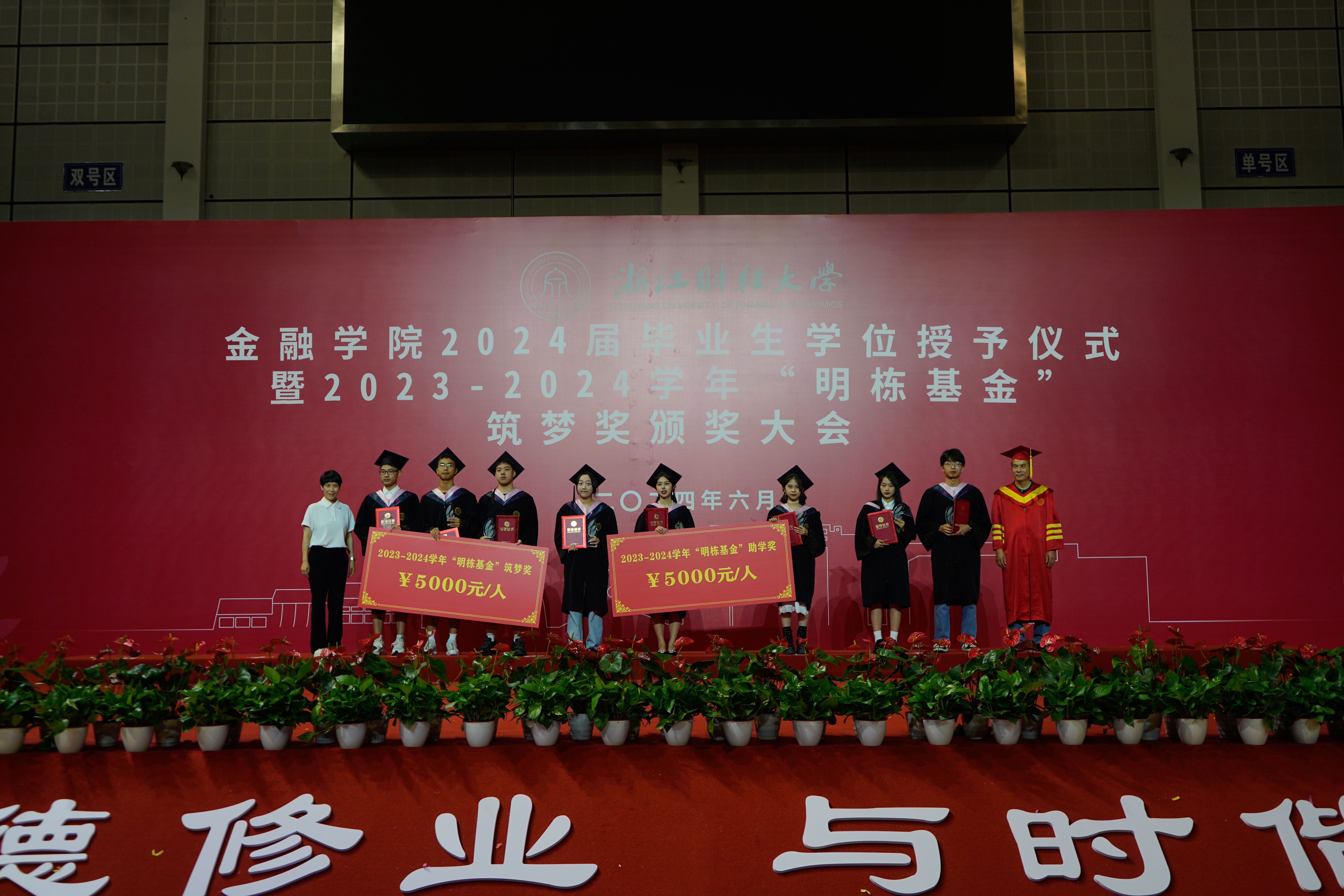 有为青年,逐梦浙财。6月20日,2023-2024学年“明栋基金”筑梦颁奖大会在校西体育馆举行。