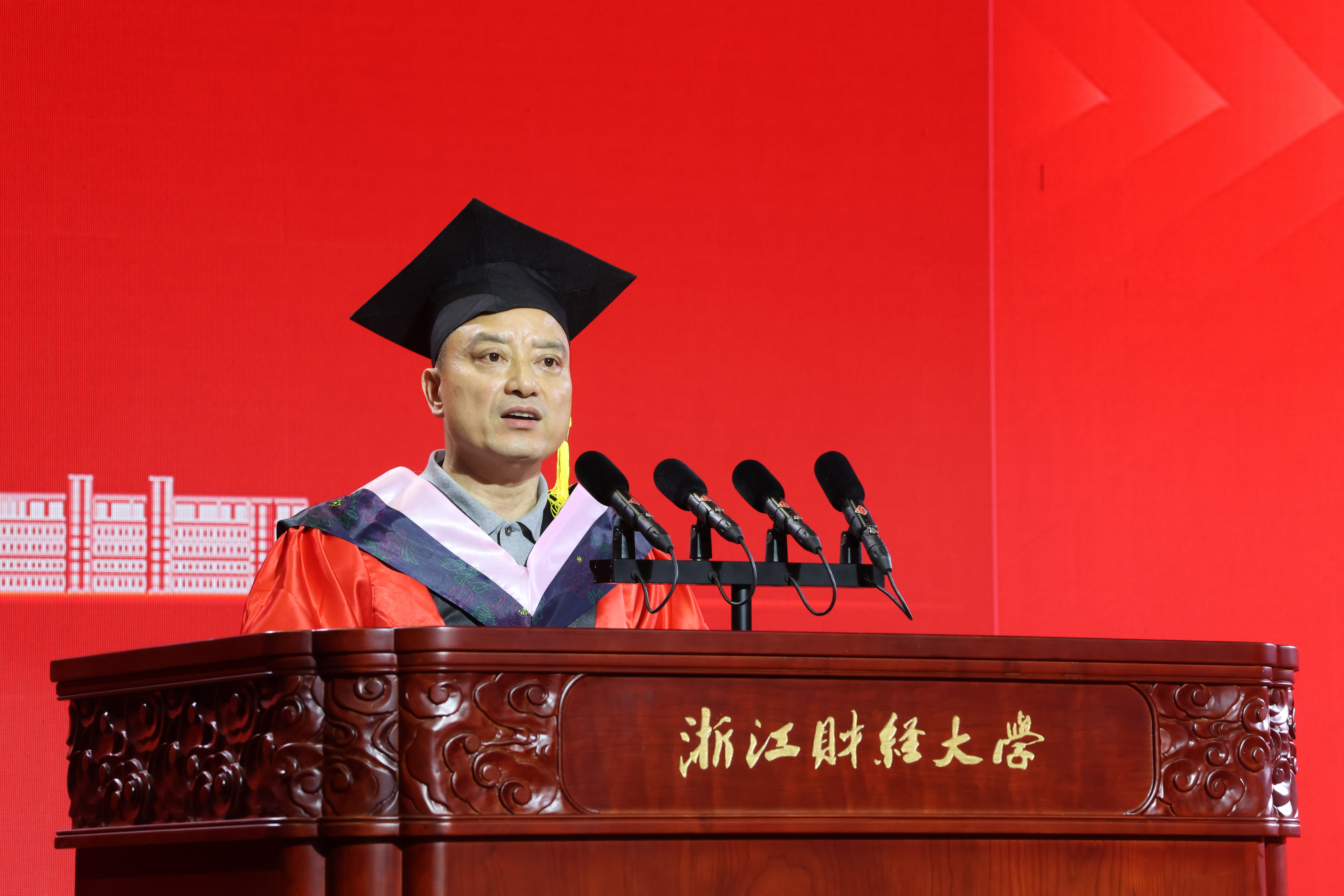 副校长李占荣在致辞中提到,学院办学至今,大批优秀学子走出学校,回馈社会和学校,学院因他们的青春绽放而精彩。他对本次获奖的同学们提出了三点期许:一是希望广大在校生以优秀校友为榜样,永葆进取之心;二是怀感恩之情践行责任,彰显青年担当;三是以专业所长服务社会,绽放“浙财金生”的独特风采。他祝福各位同学,能在优秀校友的引领下,在“明栋基金”的激励下,远航逐梦,乘风筑梦,勇敢圆梦。