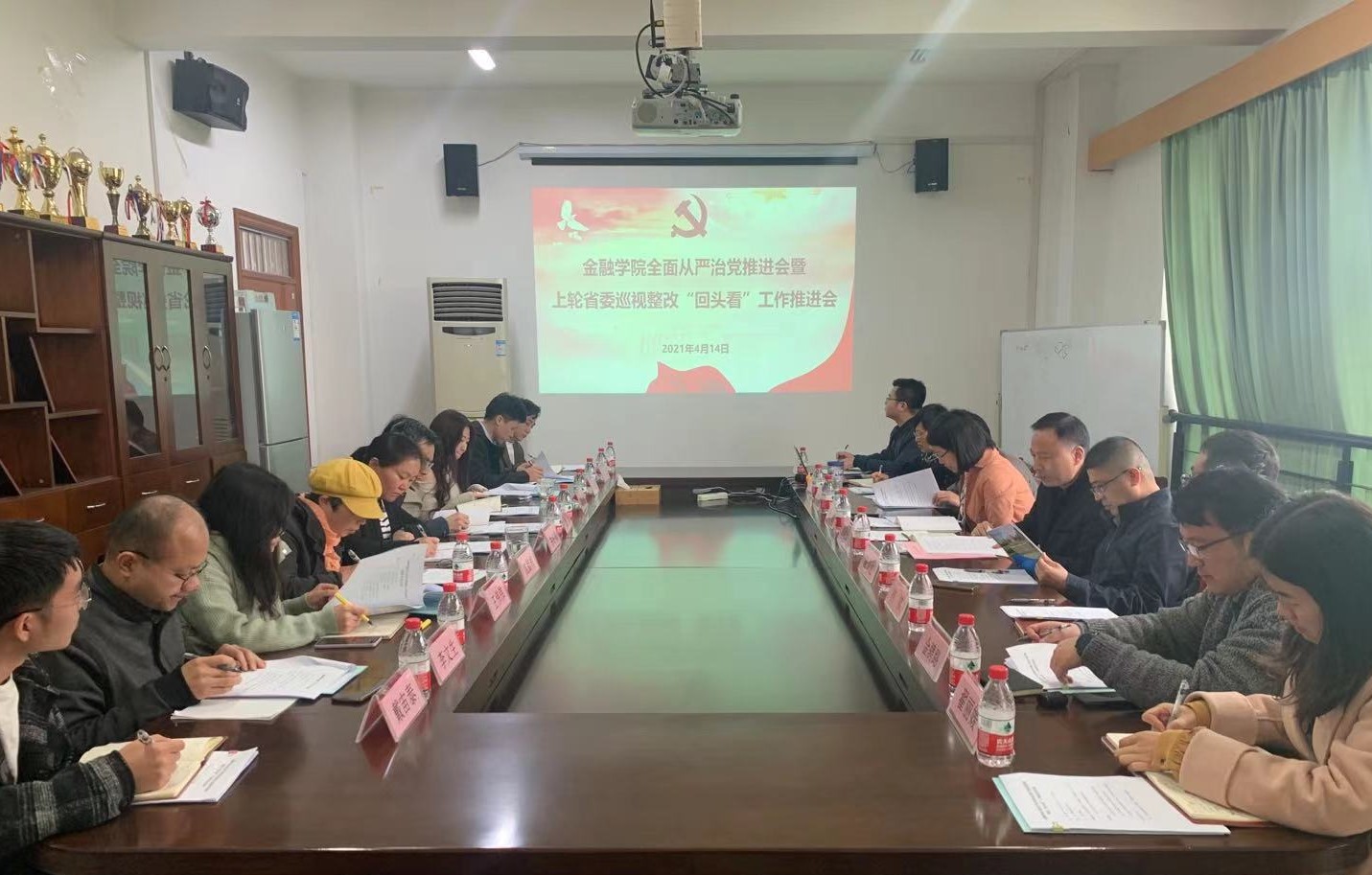 2021年全面从严治党推进会暨上轮省委巡视整改“回头看”工作部署落实推进会在学院楼422会议室举行。会议由学院党委书记蔡国金主持,学院党政领导班子、党委委员、纪委委员、各系(办公室)主任、党支部书记、研究生党建指导老师参加会议。