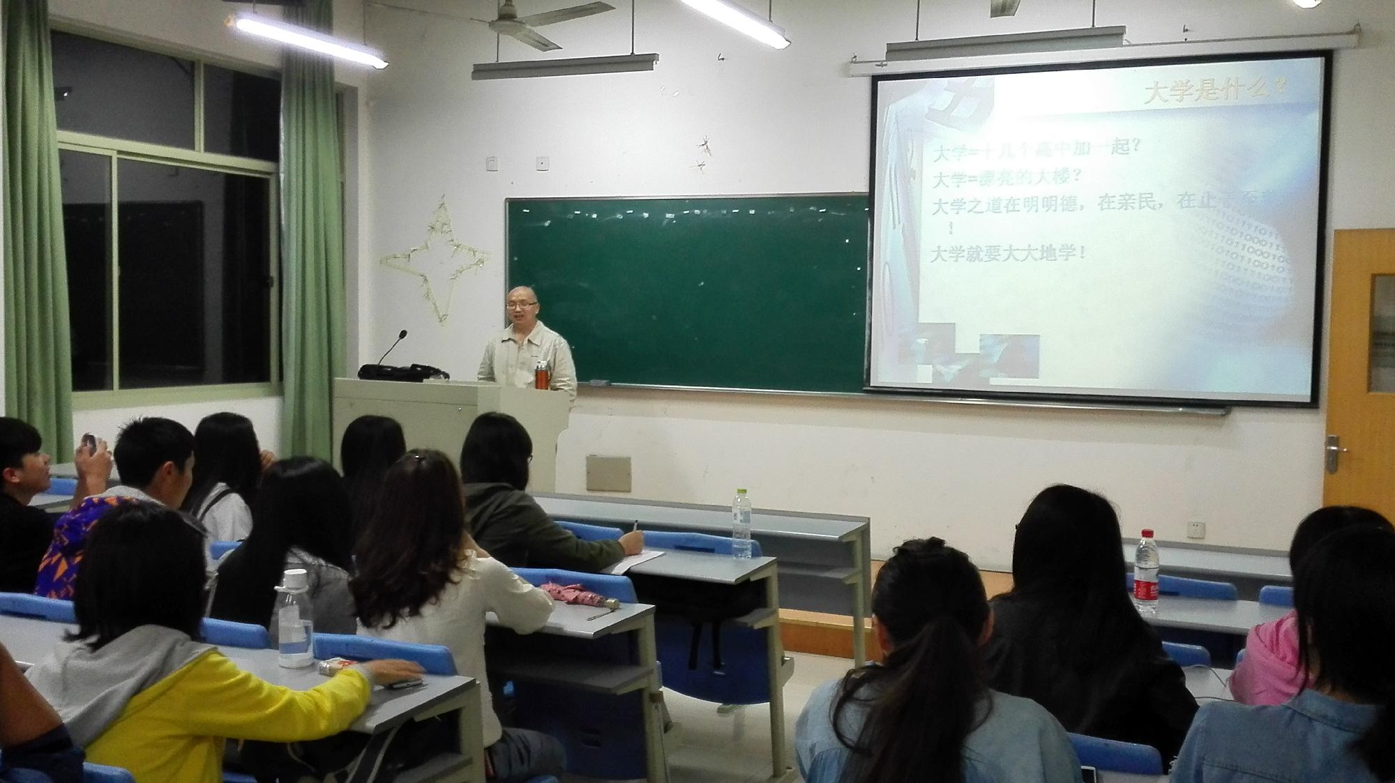 此次讲座,郗老师以“大学是什么?大学生是什么?我们要在大学学些什么?”三个问题为主题展开演讲。一开始,郗河老师讲到大学之道在明明德,在亲民,在止于至善,他通过自己在大学学习的心路历程,诙谐地向同学们讲述他对大学的独特见解与看法。接着郗河老师介绍了一些独特的思考方法,同时告诫同学们在大学里要学会多样的思维方式。最后,郗河老师为同学们精心推荐了几本好书,并简要叙述了其中内容。讲座中,郗河老师讲述的他丰富生动的学习经历让同学们如身临其境,而老师的幽默风趣也使全场笑声连连。