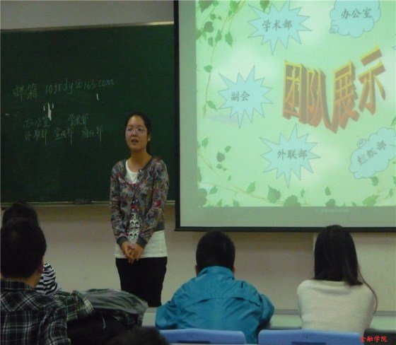 随后,新一届会长发言,她详细讲述了本学期学会的工作思路和计划。接着,在部长的带领下,每一位新干事都做了简短的自我介绍,大家都侃侃而谈,会议进入到高潮部分。