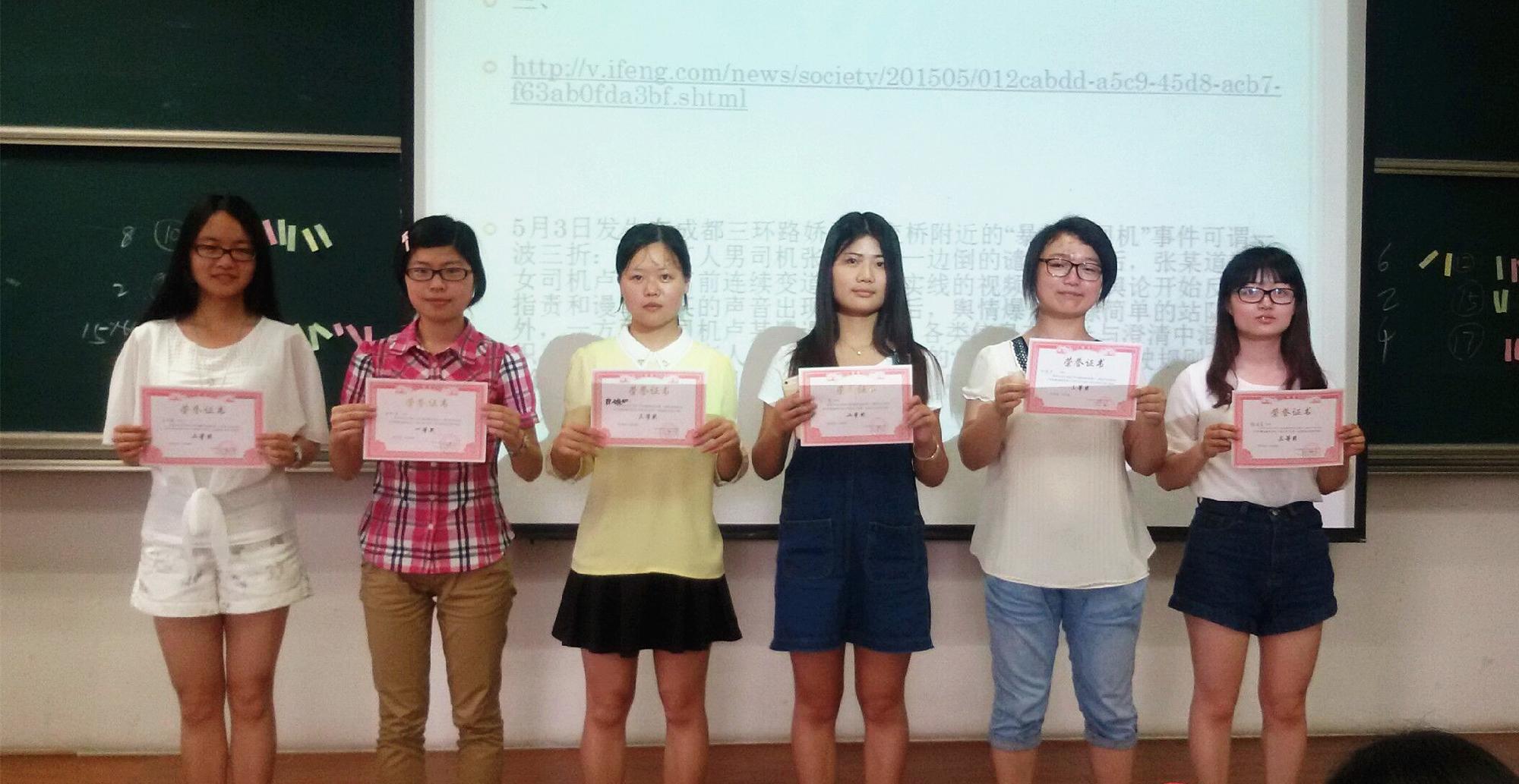 最终,决赛在和谐、友好的氛围中结束,张敏英凭借出色的发挥荣获一等奖,王小翠和马丹婷斩获二等奖,魏程晨、冯瑾宇、徐婉如获得三等奖。通过这次的知识竞赛,相信同学会更多地关注时事,激发新同学的入党积极性。