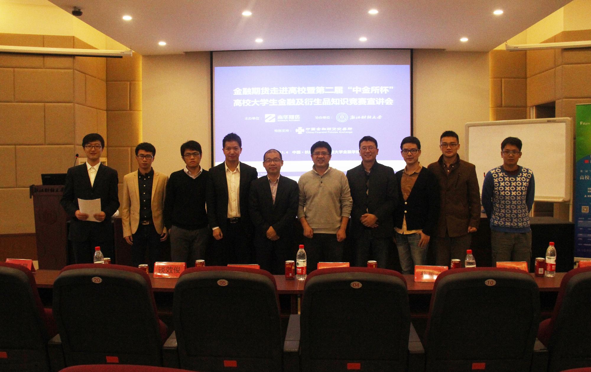 学院楼202教室共同举办了“中金所杯”知识竞赛宣讲以及专场培训会,宣告第二届“中金所杯”高校大学生金融及衍生品知识竞赛正式启动。“中金所杯”知识竞赛是由中国金融期货交易所、中国期货业协会权威主办,南华期货股份有限公司鼎立支持的比赛,给全国高校学子提供一个同台竞技的平台,大赛不仅普及了金融期货及衍生品知识,也为企业机构与毕业生之间需求脱轨提供了一个良好的解决方案,引起社会舆论一致好评。