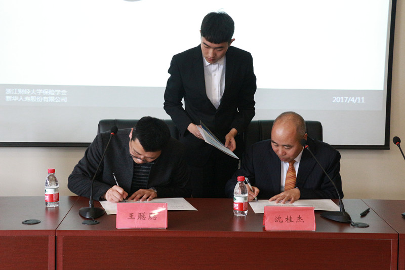 4月11日下午1点,第一届“新华人寿杯”保险案例分析大赛暨新华人寿校外实习基地签约仪式在学院楼202报告厅隆重举行。新华保险浙江分公司副总经理沈桂杰、核保核赔部副经理沈斐、风险管控部法律合规室经理姚波、人力资源部总经理张立微、酷爱成人网