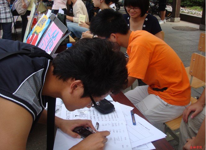 公司金融学会尽管只有两岁的年龄,但目标明确、理念清晰。两年的奋斗,公司金融学会已经做出了自己的特色,成功举办了几大知名度较高的精品活动:“金融风暴”——关注时事热点,在此畅所欲言;ERP沙盘模拟,选拔优秀人才,参加全国比赛;商业实战活动——“财子赢天下”以及现金流(Cash Flow)——感受“财务自由”,提高理财观念。正是这些活动,吸引新生前来驻足,进而仔细询问了解。学会的干事也很投入地为他们一一讲解。更有一些大二的学生,激动地跑过来询问ERP的相关事宜。同时凭借着我社团招新处设在文化长廊第一位的地理优势,加之学会正、副会长亲临现场助阵,招新工作开展得十分顺利,圆满地完成了预期目标。