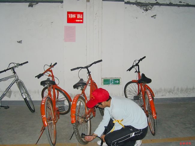 接下来的活动是公共自行车归位,是此次活动的重点。头戴红色帽子的志愿者们纷纷在手臂上系上黄色丝带,把同学们使用过但没有放到指定地点的公共自行车逐一放回各教学楼的规定停放处,并细心地为每辆公共自行车打足了气。志愿者们的热情与活力感染了现场的每一个人,并为活动营造出一种热烈而不失温馨的气氛。“想到同学们——甚至是老师,以后都能在需要时,使用上安全、足量的公共自行车,就觉得特别有干劲。”一位志愿者一边为自行车打气,一边这样说道。