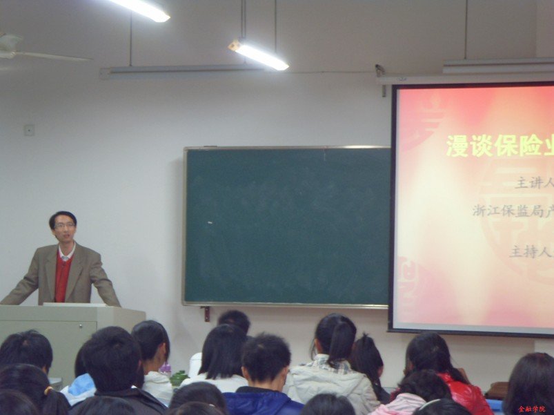 楼204教室,保险学会会员和干事会聚一堂共同聆听了来自浙江省保监局产险处处长助理卢先生关于保险业的发展与监管的讲座。