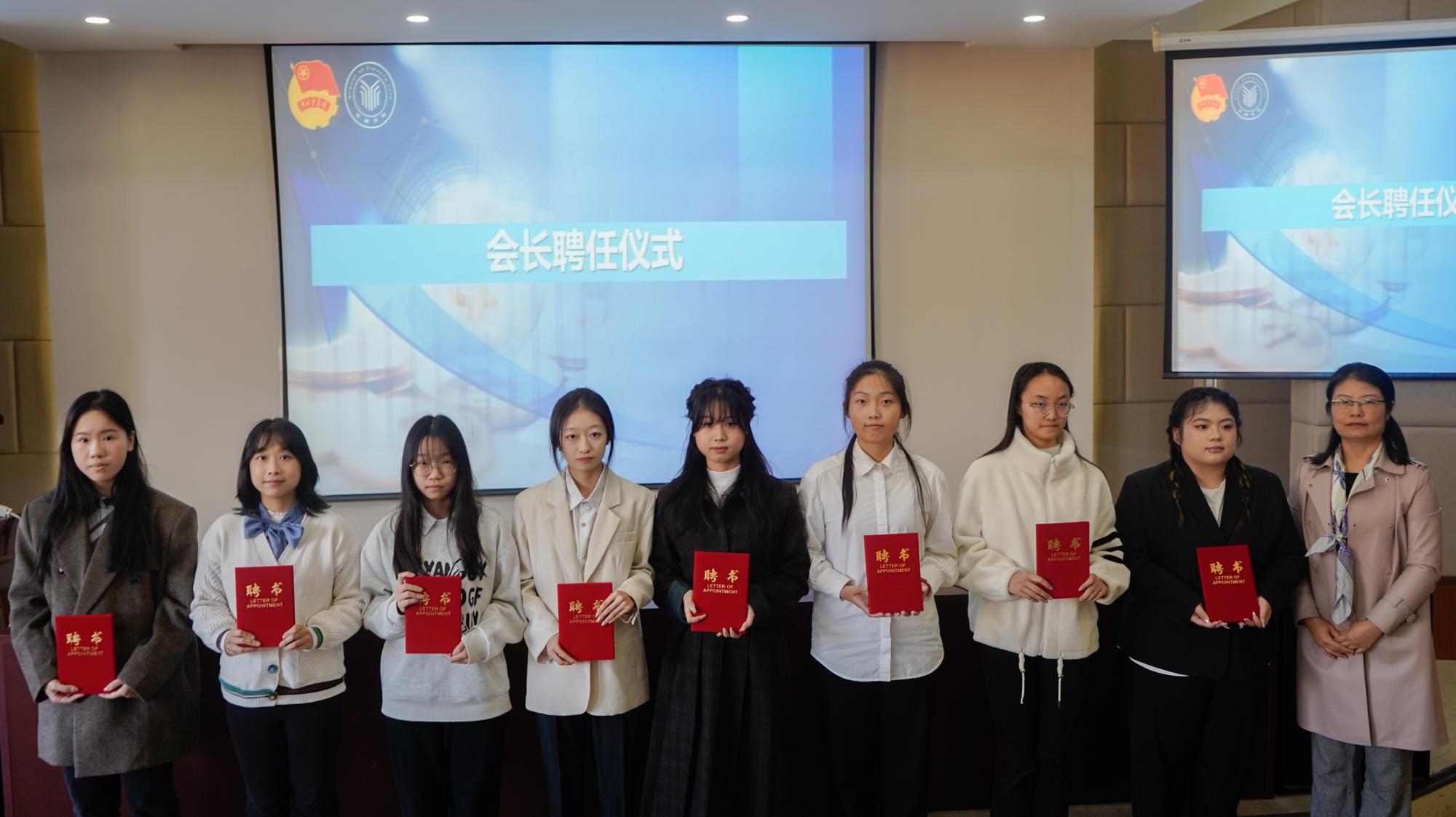 接着举行了八大学会会长聘任仪式,谢书记为新任学会会长颁发聘书并合影留念。