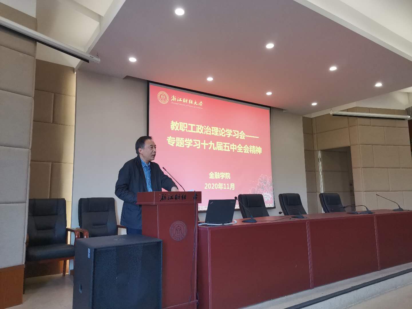 在全院教职工政治理论学习会上,学院党委书记蔡国金领学了党的十九届五中全会公报亮点内容,传达了会议精神。他指出,十九届五中全会意义重大,是我国“十三五”规划目标任务即将完成、全面建成小康社会胜利在望、全面建设社会主义现代化国家新征程即将开启的重要历史时刻召开的一次具有开创性、里程碑意义的会议。全会提出了“十四五”时期经济社会发展目标,为我们今后的工作指明了方向,提出了要求。他强调要深刻认识党的十九届五中全会全局性、历史性的重大意义,学习宣传贯彻好十九届五中全会精神,是当前的一项重大政治任务,各党支部要迅速部署落实,把学习贯彻党的十九届五中全会精神作为党员党内生活的重要内容,大家要提高认识、统一思想,明确任务,紧扣忠实践行“八八战略”、奋力打造“重要窗口”主题主线,以实际行动扎实推进学院各项工作再上新台阶。