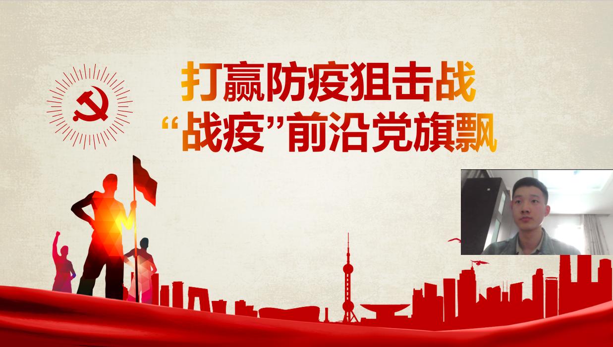 本科生第一党支部范成锦同学讲述了一批批青年志愿者走到了战“疫”前线,用专业热情的志愿服务筑起了防疫长城的青春故事,广大青年用行动证明新时代的中国青年是好样的,是堪当大任的!”