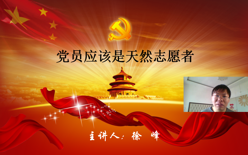 教工第四党支部徐峰老师以党员同事的抗疫志愿服务故事为切入点,剖析了志愿服务无私奉献的精神和党员作为先锋模范代表为人民服务的精神是高度契合一致的,提出每一位党员应该在志愿服务群众的过程中践行初心使命。