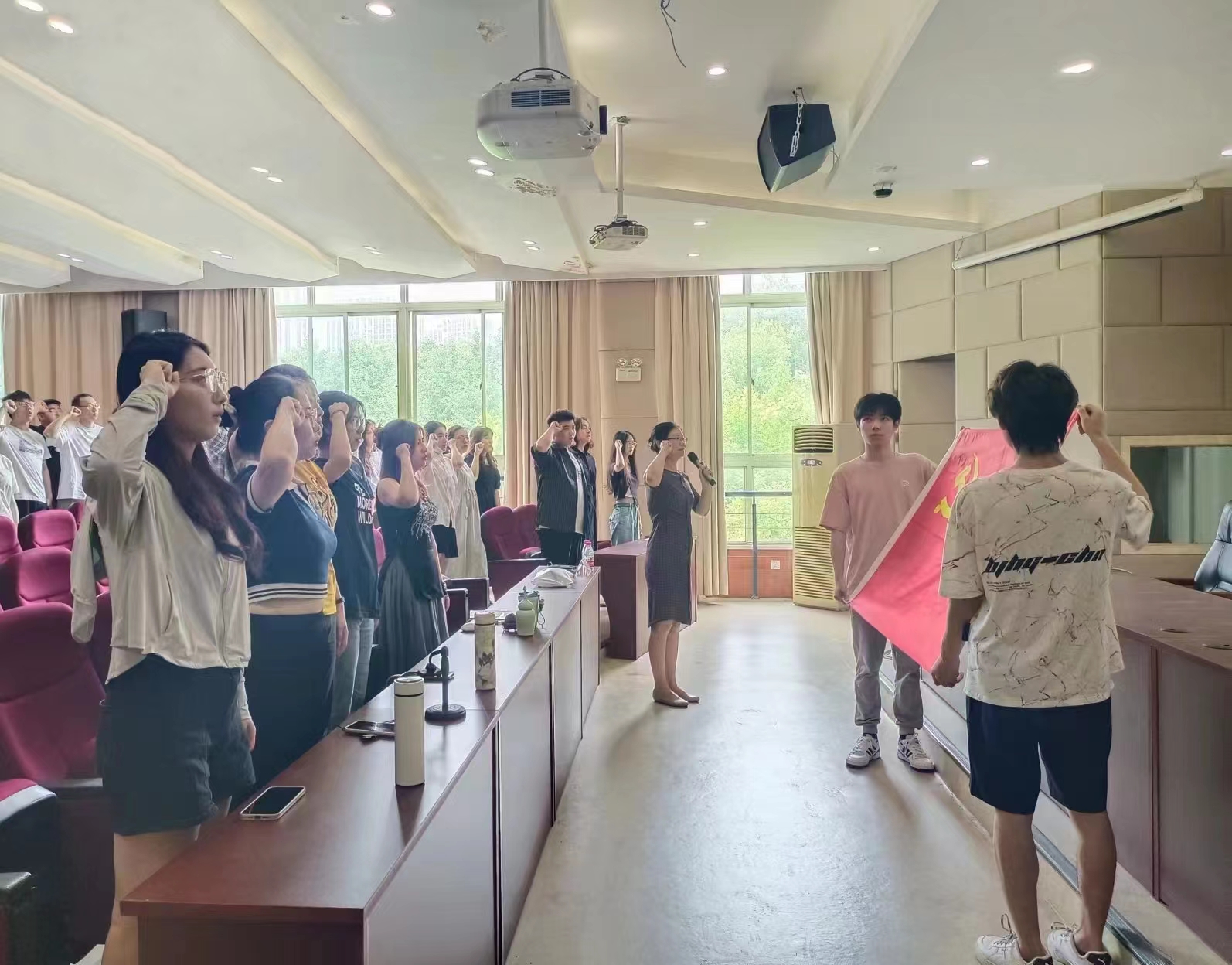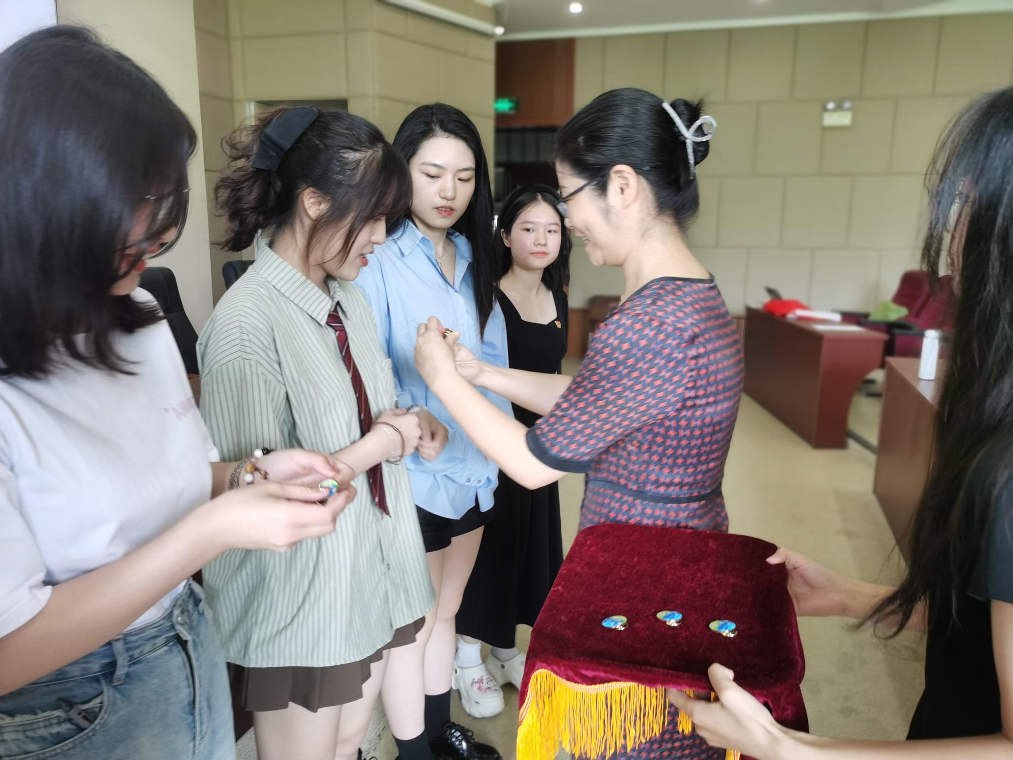 接下来,谢敏为毕业生党员代表佩戴廉洁徽章。胸前的廉洁徽章是廉洁奉公、以身作则、模范带头的精神指引,激励全体毕业生党员都要明大德、守公德、严私德,清清白白做人、干干净净做事,永葆清正廉洁的政治本色。随后,谢敏带领全体党员庄严宣誓,全体党员用铿锵有力的声音许下共产党人最神圣的承诺,共同重温入党誓词。