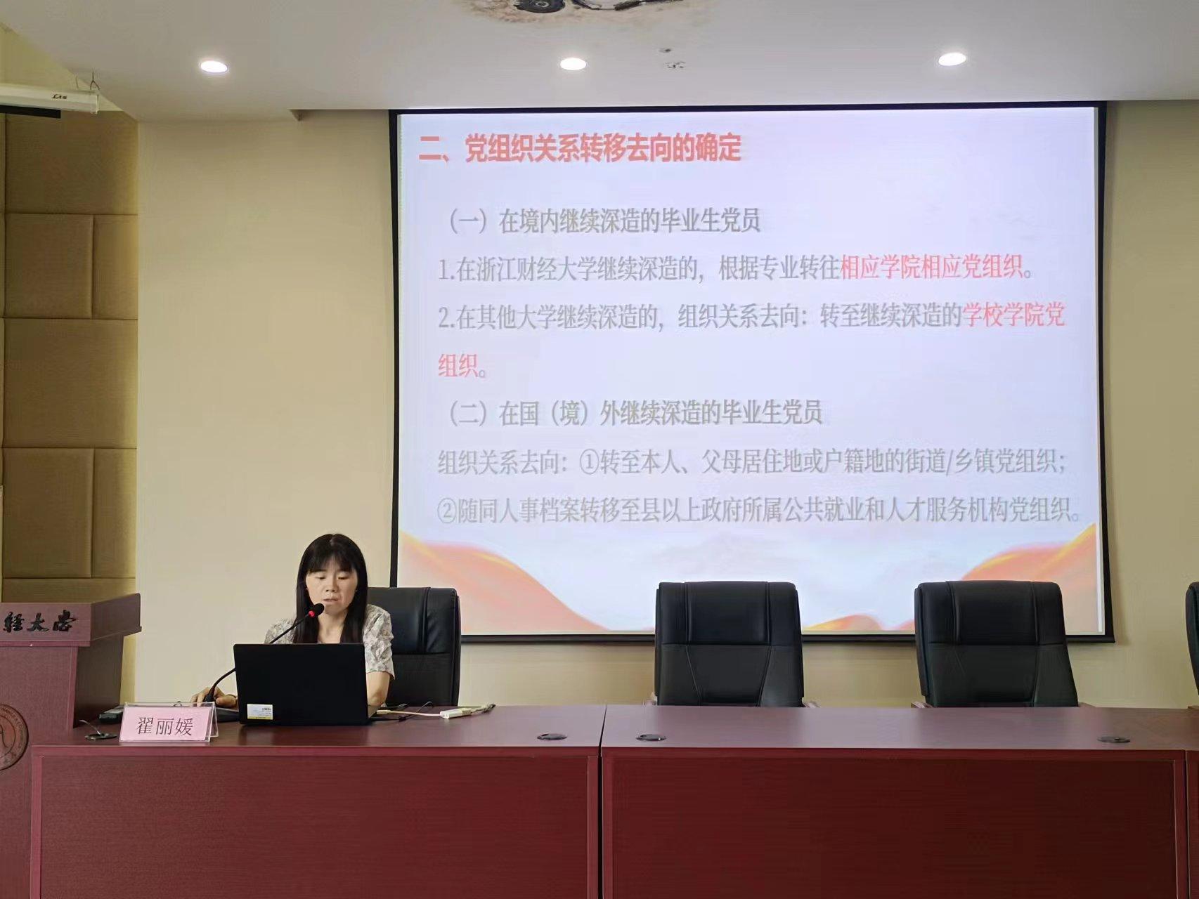 会议最后,翟丽媛老师对毕业生党员组织关系转接工作进行了布置,就党组织关系转接的重要性、具体政策和相关注意事项进行了详细的解读。