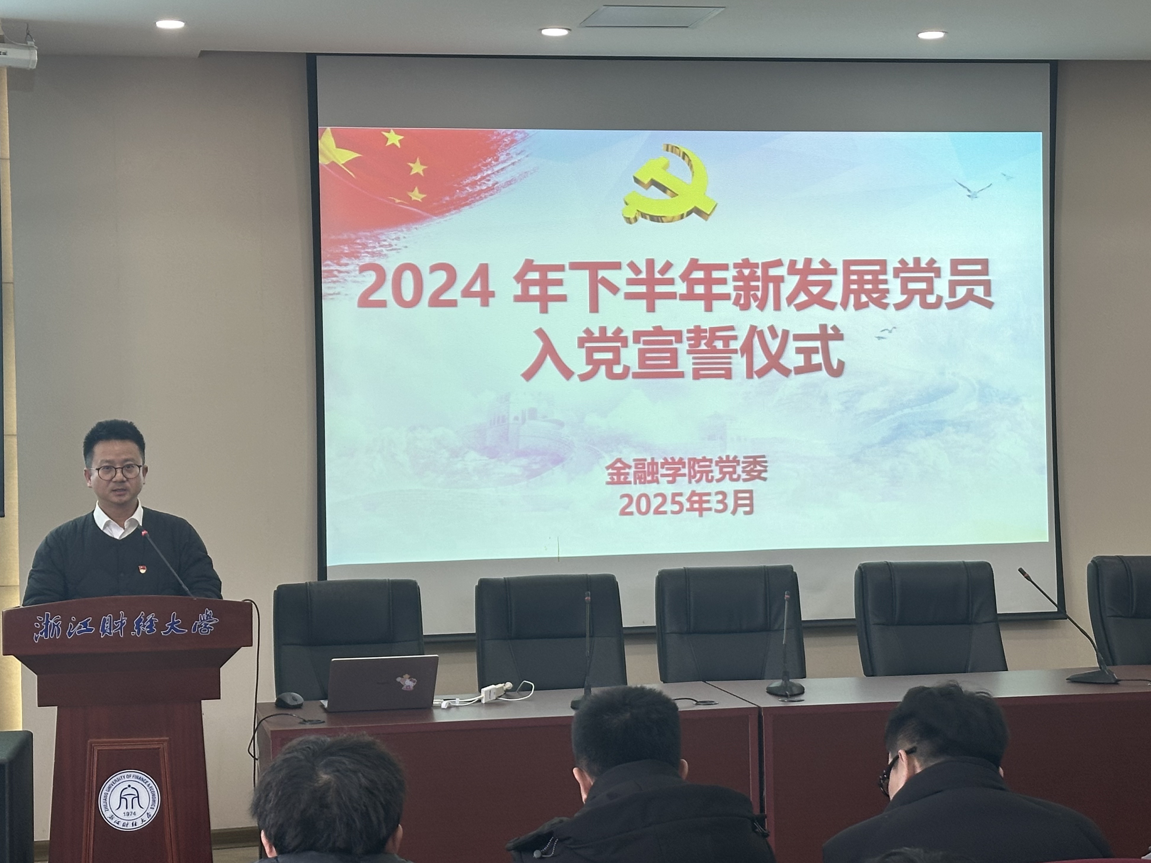 党委在学院楼202报告厅举行2024年下半年新发展党员入党宣誓仪式。学院党委书记黄文礼、党委副书记陈思佳、各党支部书记、研究生党建指导老师、各支部支委、老党员代表及2024年下半年全体新发展党员共同出席了本次仪式。仪式由专职组织员翟丽媛主持。