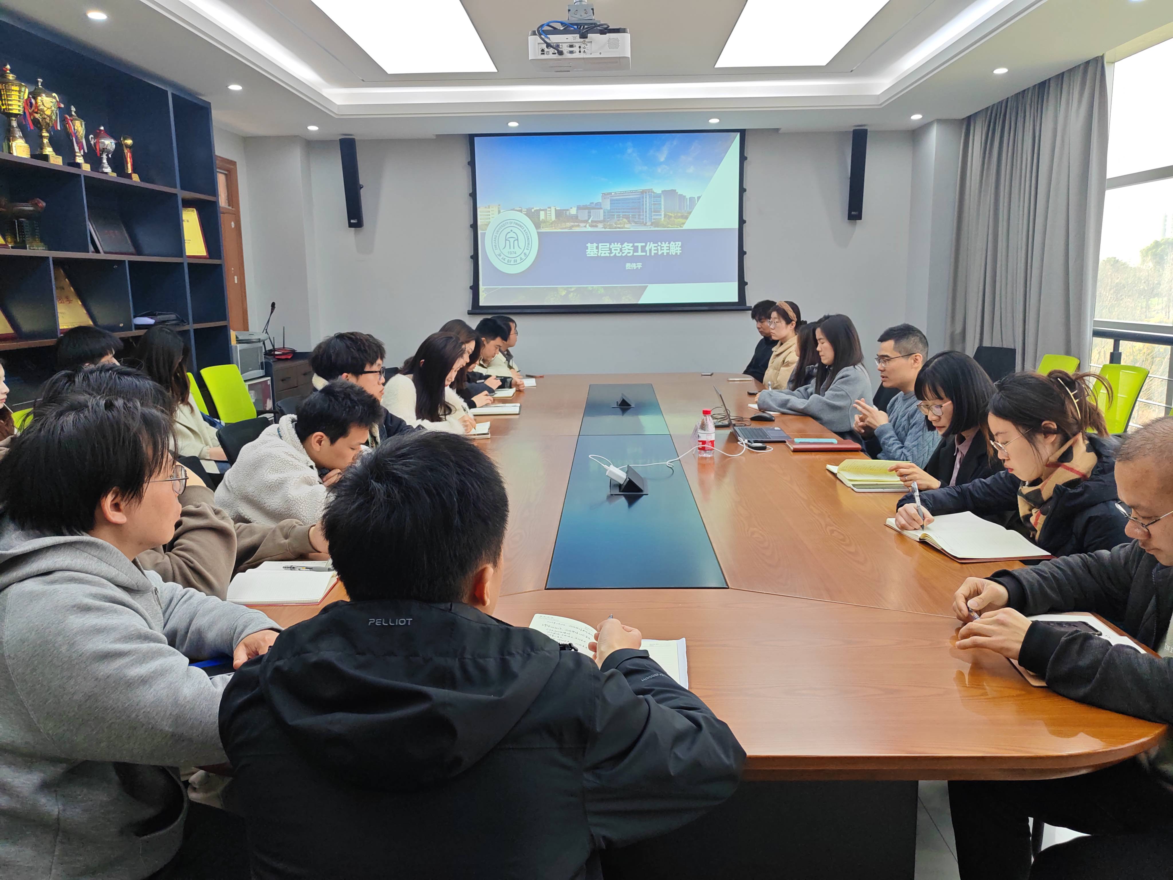 培训会上,校党委组织部、党委统战部组织工作干事费伟平以《基层党务工作详解》为主题,从基层党务工作的特点出发,围绕基层组织建设、党员发展和教育管理及党建品牌培育等工作展开全面培训。他通过丰富的案例和深入浅出的讲解,为学院党务工作者带来了系统且实用的业务指导,帮助大家理清工作思路,掌握工作要点。