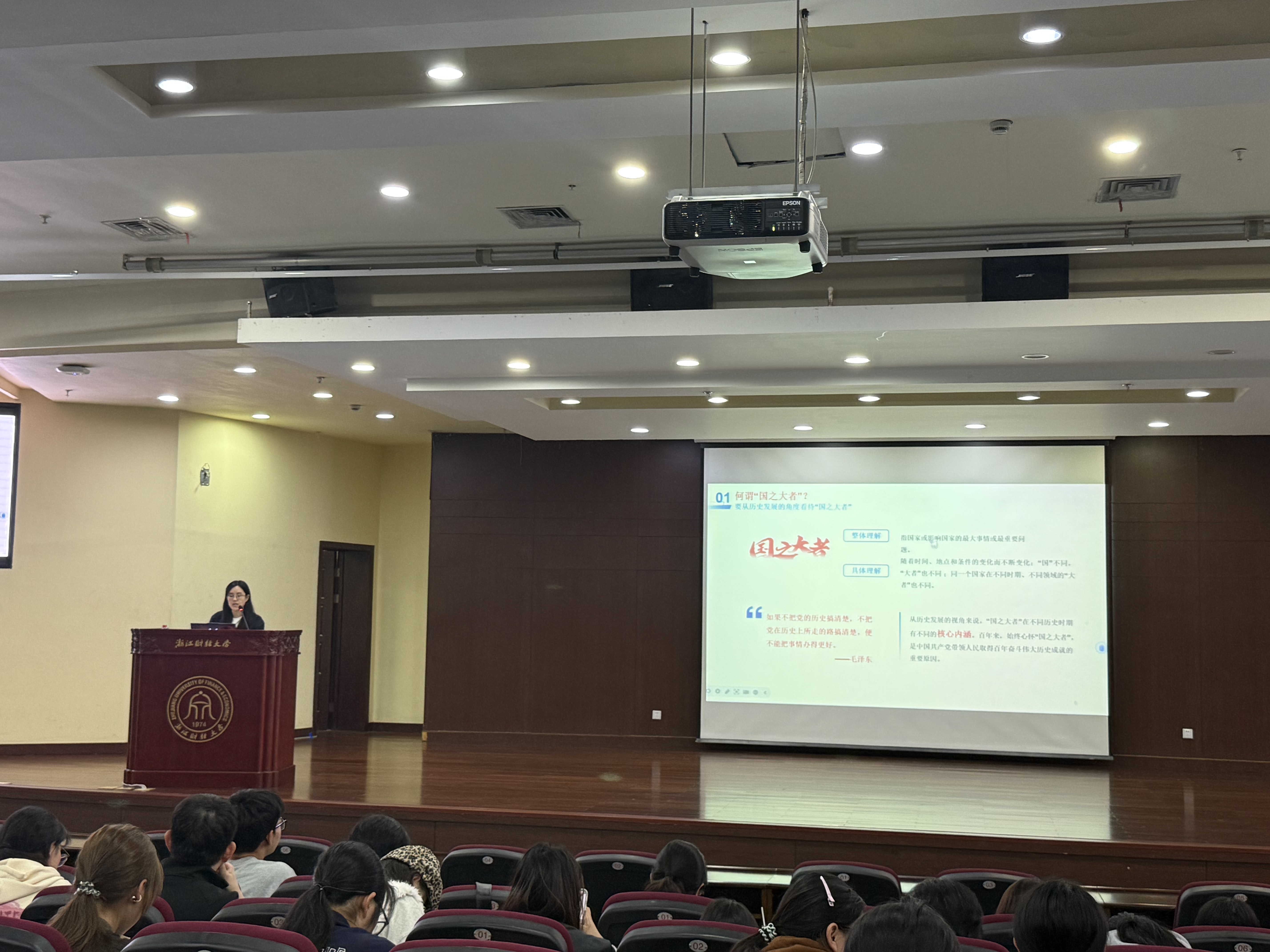 沈晓云以《牢记“国之大者”,勇做时代青年》为主题,向学员们讲述“国之大者”的内涵、新时代“国之大者”的体现,以及高校服务“国之大者”的生动实践。她鼓励学员心怀“国之大者”,树立远大理想,锤炼过硬本领,勇担时代使命,将个人理想融入国家与民族的发展进程中,在实现中华民族伟大复兴的征程中贡献青春力量。