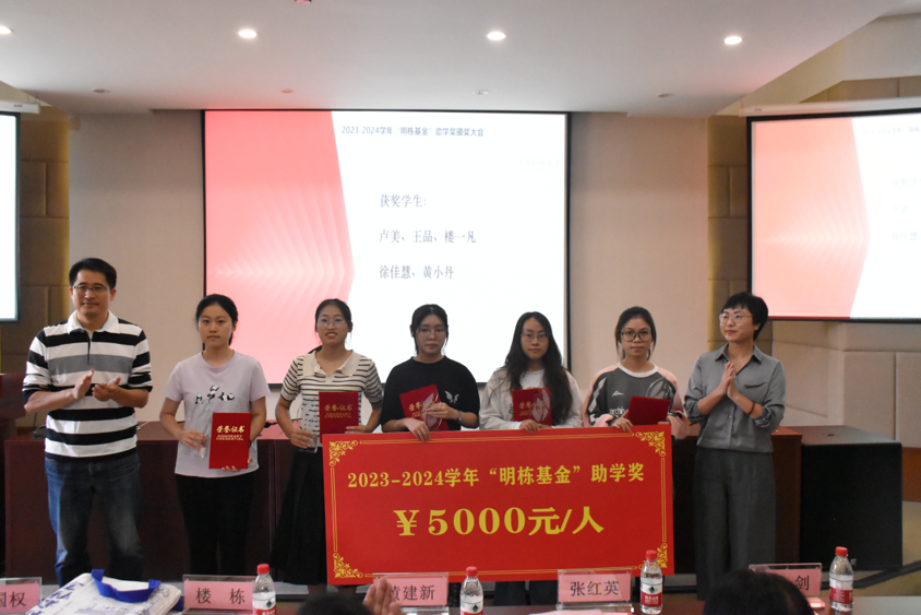 11月4号下午,一年一度校友返校日之际,2023-2024学年“明栋基金”助学奖颁奖大会在酷爱成人网 202报告厅隆重举行。 校党委副书记黄建新,学院原副院长夏红芳,院退休教师徐敏,浙江盈阳资产管理股份有限公司创始人、“明栋基金”捐赠人代表楼栋,“明...